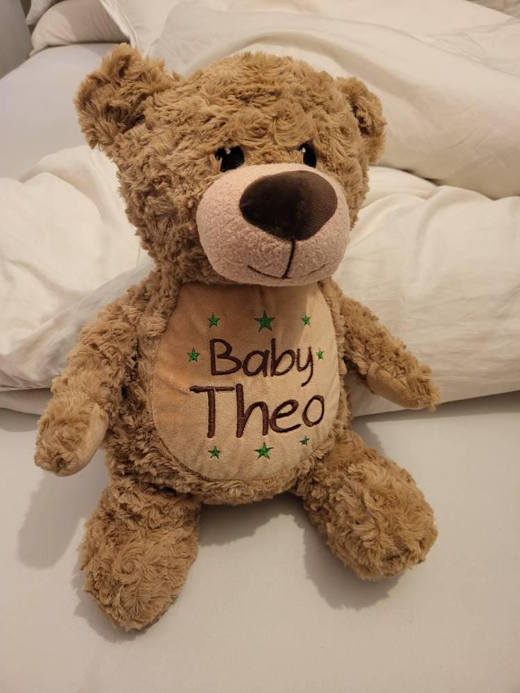 You can have any details you would like embroidered onto their tummy, from just a simple name to a full birth block with all the details of a child’s birth, or a special message of your choice.